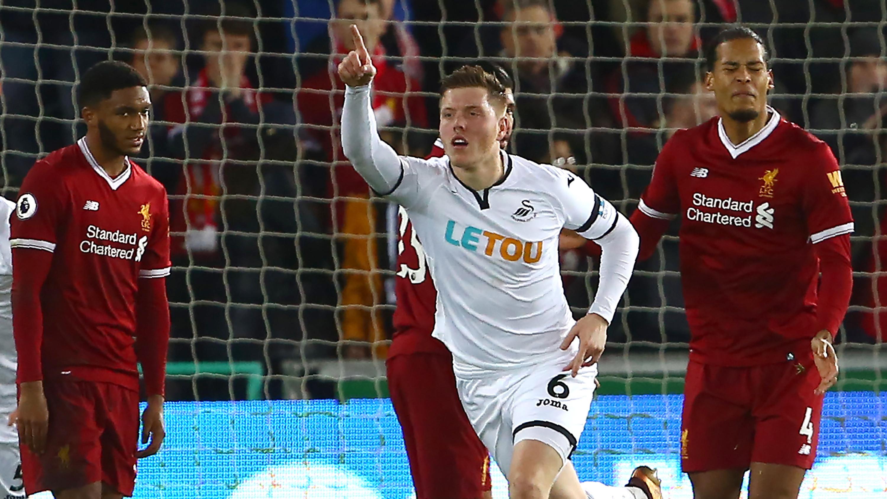 Liverpool bertanding melawan Swansea City pada lanjutan Premier League di Liberty Stadium, Selasa dinihari WIB (23/1/2018). Dalam duel ini, rekor tak terkalahkan The Reds terhenti usai kalah 0-1. Gol tunggal Swansea lahir, menit ke-40 lewat aksi Alfie Mawson.